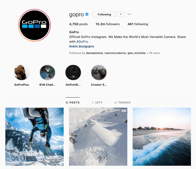 Define the main role of each social media channel within your sales funnel. For example, instead of sharing content about the features on their cameras (middle-of-the-funnel), GoPro uses their Instagram account to inspire their audience with amazing video and photography (top-of-the-funnel).