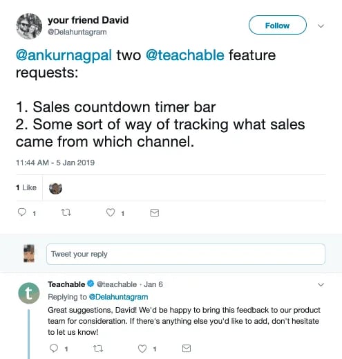Other times, users will have questions, complaints, support requests, or simply feedback—replying to these in a timely manner will help you keep a high level of satisfaction with your product or service.