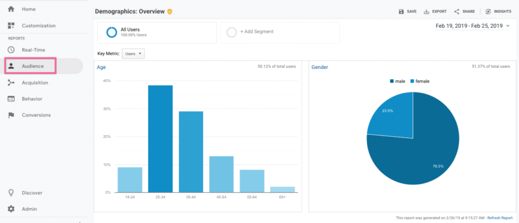 Audience reports include metrics about who your visitors are, which can help you define your target persona.