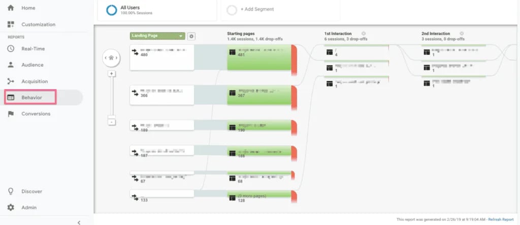 This includes reports like the most popular landing and exit pages or the most common behavior flows within your website.