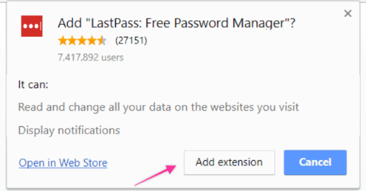 - A pop-up will ask you if you want to add the LastPass browser extension. Click on “Add Extension”. You will be notified when the installation is complete;
