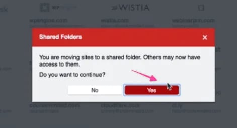 - Click “Yes” on the pop-up asking you if you want to move this site to a shared folder.