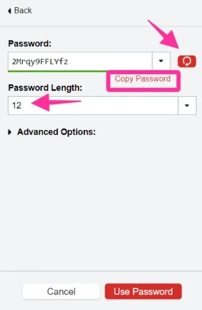 - Click “Copy Password” if you’re OK with what has been generated. If not, you can always click the little red “Refresh” button.